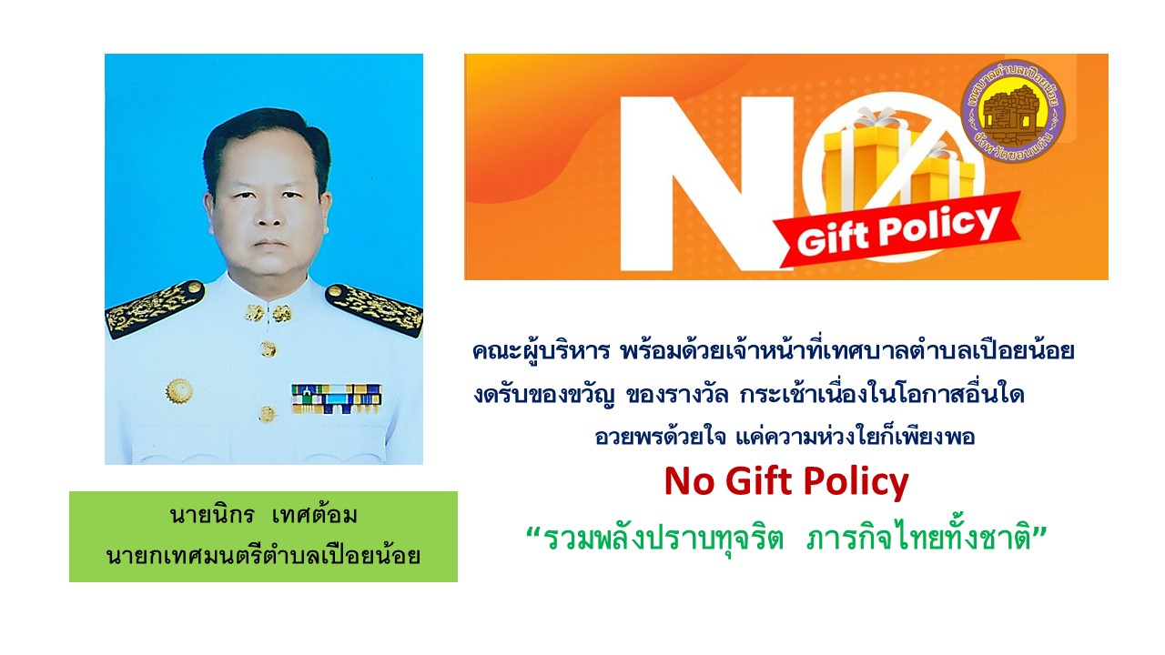 ประกาศนโยบายไม่รับของขวัญ ทรพัย์สินหรือประโยชน์อื่นใด ของเทศบาลตำบลเปือยน้อย